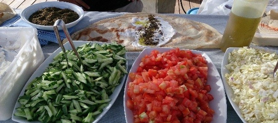 בסיום הטיול פריסה בסגנון דרוזי דוכן פלאפל אוטנטי ודוכן פיתות דרוזיות עם לבאנה וזעתר הנאפות במקום. מבחר רב של סלטים: סלט ירקות ,כרוב לבן, כרוב אדום, חומוס בלאדי ביתי, טחינה ביתית וחמוצים. שתיה -לימונדה קרה עם נענע, מים צוננים, קפה, תה צמחים ולקינוח בקלאוות.