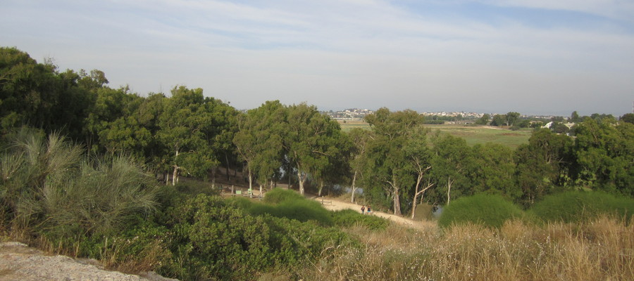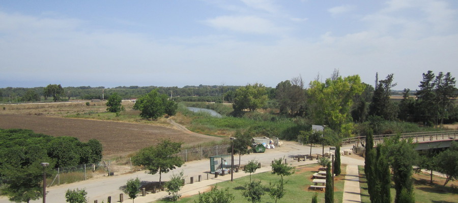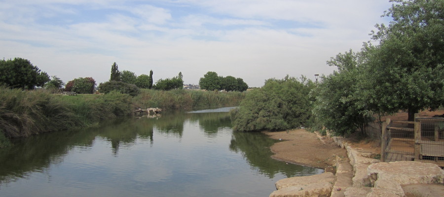 *אפשרות נוספת במקום המסלול (אחרי גשר הצבים)- ביקור בחלק של “נחל לדוגמה” שבו אזור מרוצף ועצי בוסתן.